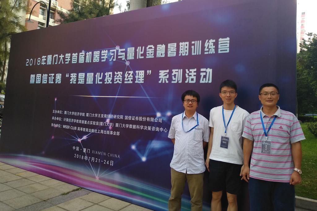 7月21日至24日金融工程系系主任张林和教师许振国博士,以及投资与理财系的云山青年学者吴柏毅博士一同前往厦门大学参加为期四天的2018年厦门大学首届机器学习与量化金融暑期培训营。三位教师通过白天讲座学习,晚上上机实践操作的方式对量化交易的教学与实操进行较为系统的学习,该培训对于太阳城金融工程系与投资理财系在未来开展量化投资分析教学具有十分重要的意义。