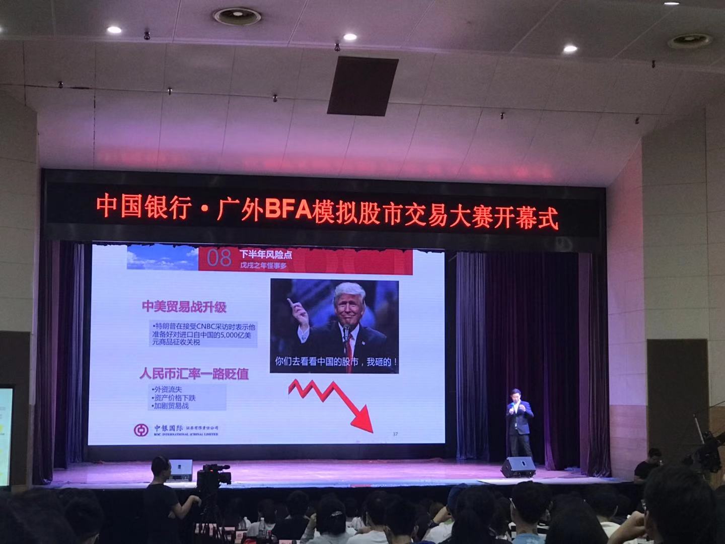 中银国际证券财富管理部主管黄彪给各位同学带来了干货满满的中银大讲堂——A股绝地V型反击计划。他从国内外政治经济格局、股市动态、投资技巧等几个方面入手,给同学们讲解了当前股市的大形势,也和同学们分享了本次模拟股市交易大赛交易时需要注意的事项、要点、交易技巧。