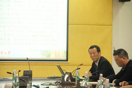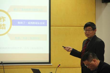 战明华介绍了华南财富管理中心研究基地过去一年的建设发展,并对主要工作、举办的会议论坛、获得的科研成果、服务地方工作等作了回顾与总结。他分析了目前存在的问题,提出下一阶段工作的重点在于继续优化课题招标选题、完善激励制度、加强与省市相关部门以及市社科联的沟通、扩大基地的学术和服务地方的影响力。