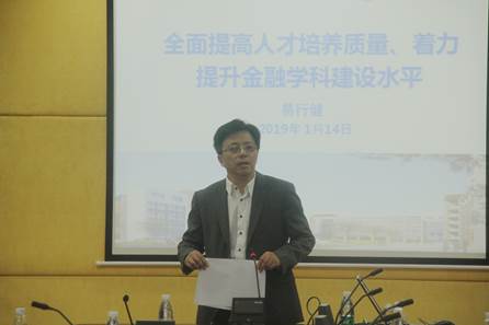 展凯结合分管工作,围绕行政及对外交流合作、财务工作、金融专硕中心建设三个方面进行回顾与总结。他指出,通过积极的对外交流,公司的团队建设、学术影响力得到了良好的发展;关于公司财务工作,绩效工资实施方案得到完善,财务保持稳定并略有增长;同时,公司顺利完成金融学、金融工程硕士研究生和MIB(金融方向)专硕的招生工作,完成了2019年金融专硕招生计划的制定。