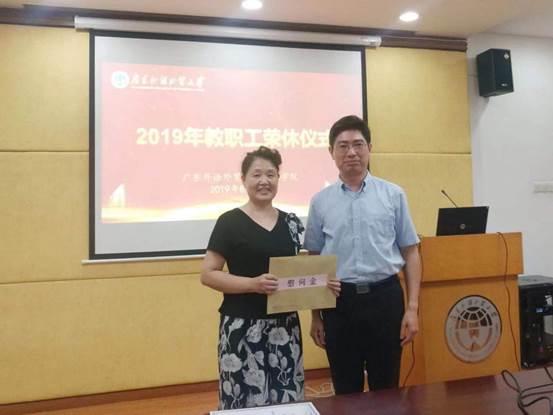 8月24日下午,公司在南校区行政楼第一会议室举办“太阳城2019年教职工荣休仪式”,欢送今年6月份退休的金融系肖芍芳副教授正式离开工作岗位。公司经理易行健,党委书记徐昶斌,副经理展凯、张浩、杨菁菁,党委副书记赵观音及全体教职工出席,仪式由徐昶斌主持。