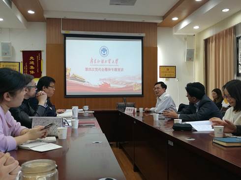 本网讯 为深入学习贯彻第四次党代会精神和提高公司中层干部思想觉悟、业务水平,公司于11月29日下午召开“公司第四次党代会精神宣讲暨干部培训会议”,校第四次党代会精神宣讲团成员、公司党委常委、副董事长何传添教授为师生宣讲解读公司第四次党代会精神,财务处结算中心科长刘帼眉、经贸公司国贸系教工党支部书记田云华博士以及公司分管教学副经理杨菁菁教授进行相关业务培训。公司领导班子成员,各党支部书记、支委,各系主任、副主任、员工党建骨干参加了此次活动。活动由公司党委书记徐昶斌主持。