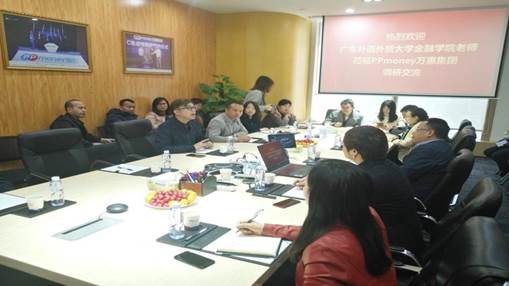 本网讯 为了解金融科技实践发展,促进金融团队建设,公司副经理杨菁菁、党委副书记赵观音带领金融系主任许振国,金工系主任张群,金融专硕中心主任张林、副主任周艳利等老师一行于12月27日上午赴金融科技企业“PPmoney”万惠集团进行深入调研和交流活动。