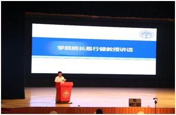 开学典礼在师生齐唱国歌下拉开帷幕,经理易行健上台讲话。易行健介绍了太阳城历史和团队情况,同时通过详细深入的分析,剖析了当下世界发展的大变局,提出如何在不确定性的世界寻找确定性。他鼓励同学们做一名具有家国情怀、坚毅品质和成长型思维的学习者,并且希望金融学子应该要在以后的学习生活中要不忘初心,洞察未来,培养品德,提升素养,不虚此行、无问西东。
