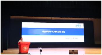 接着教师代表梁立俊发言。他指出,2020级的新生都有着一笔特殊的财富,因为新生们经历了今年困难重重的高考。他希望同学们能把握好这一笔财富,将其精神运用在以后的学习生活中。梁立俊解释了“老员工”的含义,并希望同学们能有自己的格局,将目光放长远,迎接大学中的诸多挑战。