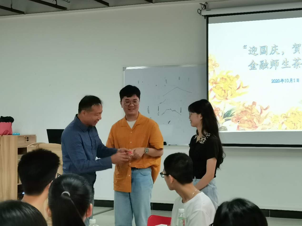 多位新生作为员工代表发言分享,畅谈入学后的所思所想。赵观音为员工代表赠送月饼、牛奶等节日慰问品。随后,师生交流讨论,共享美食,气氛热烈。金融新生们互相分享学习经验与丰富多彩的校内生活。