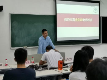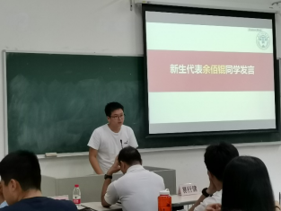 作为创新班的新生代表,余佰锟在发言环节中展示出金融学子饱满的精神面貌。他表示,他将会与创新班的全体同学一起秉承“明德尚行,学贯中西”的校训,拿出“天生我材必有用”的信心,拿出“吹尽黄沙始到金”的毅力,去迎接大学的风雨洗礼,去为祖国的未来奋斗拼搏。