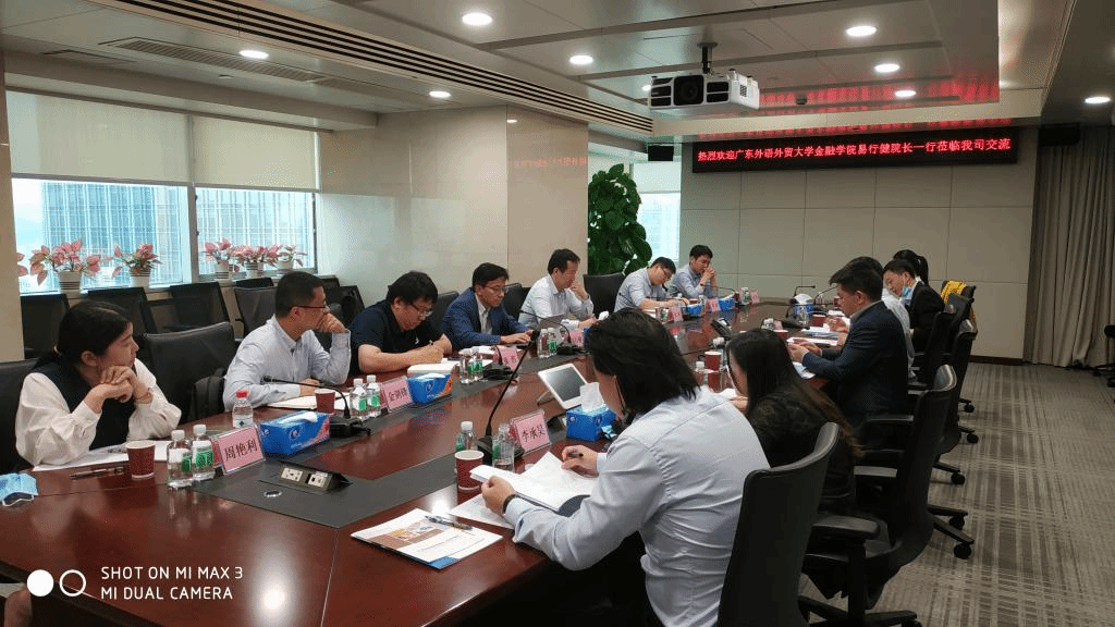 随后,易行健一行赴广发期货就广州期货交易所上市品种进行了进一步的深入调研。广发期货常务副总经理邹功达热情地接待了公司调研教师。双方就广州期货交易所拟上市期货品种,未来几年内可能推出的上市品种以及长期可推出的交易品种进行了深入交流。此外,双方还进一步就期货人才培养,科学研究合作等问题交换了意见。