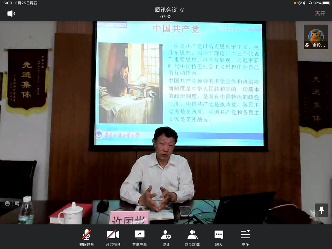 3月25日下午, 公司召开全体党员大会暨党史学习教育动员大会,传达学习习近平总书记在党史学习教育动员大会上的重要讲话精神和省、公司党史学习教育动员大会精神,动员部署开展公司党史学习教育工作。根据疫情防控要求,会议分别在线下会场(院系楼401会议室)和线上会场(腾讯会议平台)同步进行。公司“五老”宣讲团成员、原公司党委副书记、副董事长许国彬教授,公司党委委员、公司经理易行健,公司党委书记徐昶斌,党委组织员、党务秘书、师生党支部书记代表、辅导员及员工党建研究会骨干在线下会场参加,其他师生党员、发展对象和入党积极分子等共350余人在线上会场参加。大会由党委副书记赵观音主持。