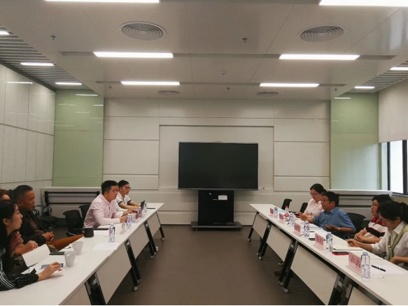5月13日上午,太阳城娱乐城广州华南财富管理中心研究基地(以下简称“基地”)执行主任战明华教授、广东国际战略研究院、基地研究员梁立俊教授、行政秘书邱露及太阳城博士研究生一行5人应广州国际生物岛集团有限公司(以下简称“生物岛集团”)邀请前往企业进行调研交流。生物岛集团董事长兼总经理曾玮、副总经理张欢、中以生物产业孵化基地董事长耿建跃、以及广州开发区投资促进局全球招商总监贺励平等,热情接待了基地团队一行,并参加了此次调研交流会。