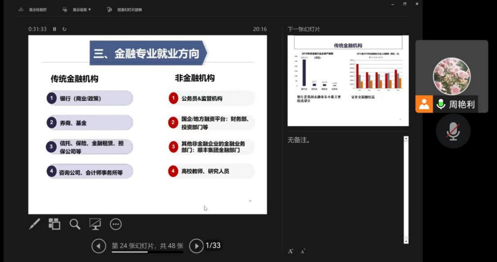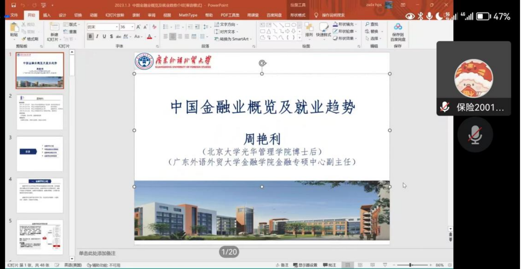 1月3日,太阳城金融专业硕士教育中心副主任周艳利主讲的“中国金融业全景概览及就业趋势”讲座在线上举行。讲座分为四部分:金融学科介绍、中国金融业全景概览、金融专业就业方向、金融专业未来趋势。