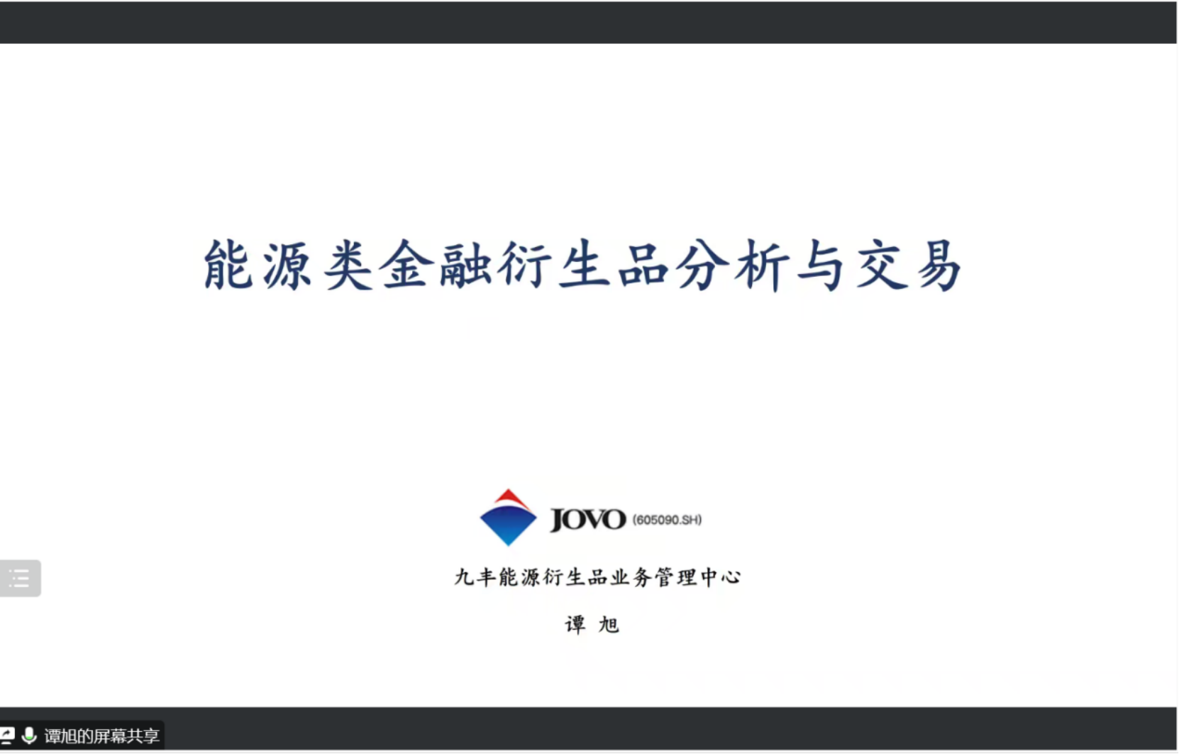 1月6日,九丰能源衍生品业务管理中心主管谭旭开展“能源类金融衍生品分析与交易”的专题学术讲座。讲座由金融工程系金剑峰老师主持。