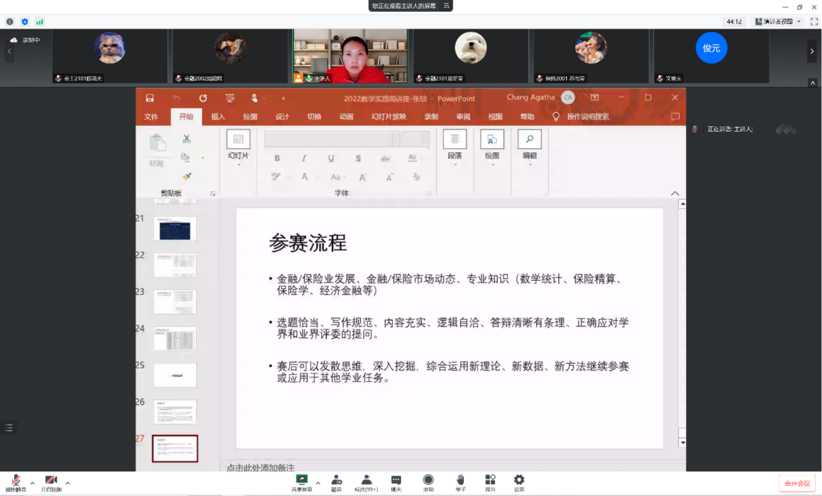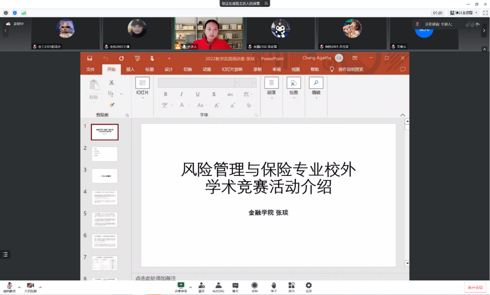 张琰首先介绍了校外学术竞赛如厦门大学保险与再保险论坛、中国风险管理与精算论坛等论坛的参赛流程,并指出参赛过程中员工可能遇到的问题以及在论文写作中员工所应注意的方面,如论文的大方向、突出自己设计的产品的优势。