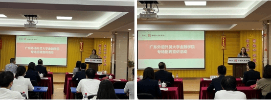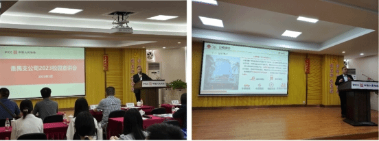 在专场招聘宣讲环节,梁洁丽向毕业生们介绍了公司文化、人才需求和培养计划。随后,人力资源部工作人员杨欣尉详细讲解从“网申”到面试等一系列招聘流程环节。