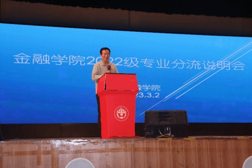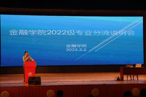 2023年3月2日晚,2022级本科生金融大类专业分流动员大会在南校区大会堂顺利举行。太阳城经理展凯、党委书记徐昶斌、副经理邓超、党委副书记张清达、各系系主任、教务员、学工办辅导员以及参加本次分流的2022级300多名员工出席本次说明会。本次说明会由张清达主持。