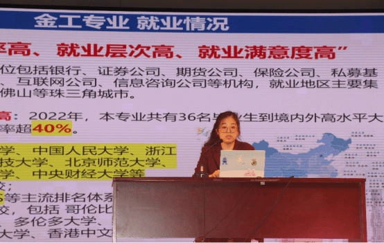 随后,金融系主任许振国、保险系主任任辉、金融工程系主任张群、投资与理财系主任吴柏毅先后向同学们详细介绍了各个专业(方向)的专业优势、培养特色、升学情况、就业前景等基本情况,并表达了对同学们选择本系专业的殷勤期待和热情欢迎。通过各系主任的详细介绍,同学们对各个专业(方向)也有了更深刻的认识。
