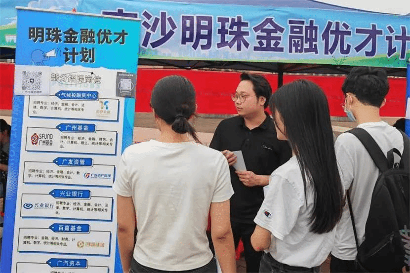 “明珠金融优才计划”是为满足明珠金融创新集聚区金融企业人才需求而推出的政府级项目,主要面向金融、保险、金工、金投、计算机、财务等专业的本科生及研究生。为了帮助公司更多学子了解“明珠金融优才计划”,公司积极联动公司员工就业创业中心,将该计划纳入由广州市人力资源和社会保障局、广州市教育局、广州市工业和信息化局、广州市人民政府国有资产监督管理委员会、广州市工商业联合会、中国共产主义青年团广州市委员会等联合主办的“阳光就业 事业扬帆”2023年广州市“阳光就业”高校毕业生系列招聘活动(广外专场)中,并通过公司及信息、会计、经贸、法学等公司本科及研究生辅导员将该计划发布到员工群体中,实现资源共享。