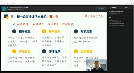 3月30日,太阳城院领导及教学秘书代表参加江苏理工公司原党委书记朱林生的直播讲座《新一轮审核评估的创新与实践》。