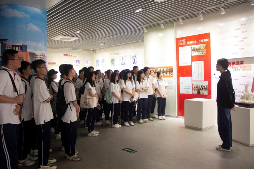 上午,桂中师生一行首先参观了位于大学城校区图书馆的校史馆。通过校史馆讲解员的娓娓道来,师生一行深入了解广外的发展历程、学科专业建设沿革、人才培养特色优势与优秀员工发展等综合情况,高中学子们深深感受到历代广外人的初心使命和责任担当。