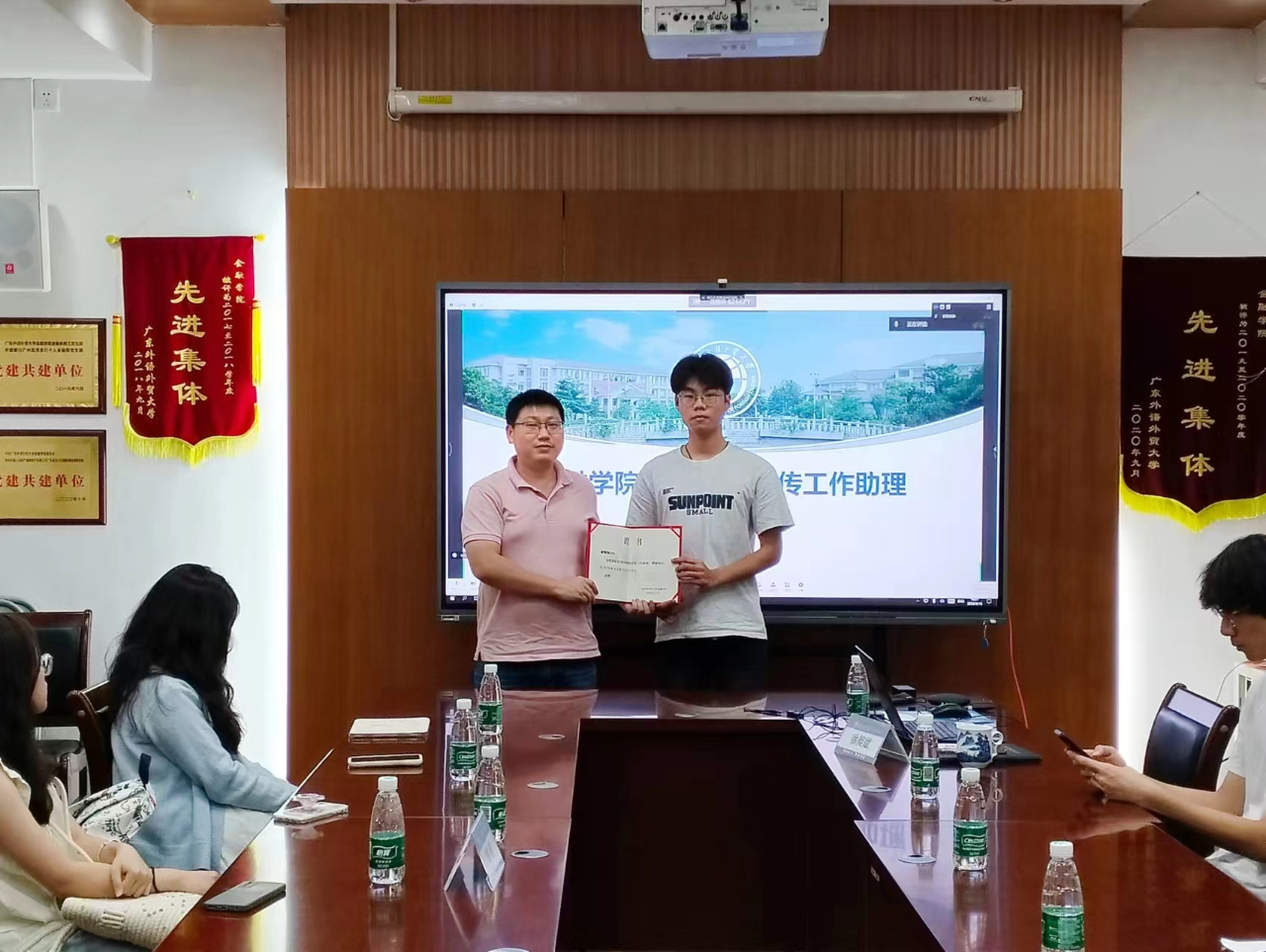 会上,徐昶斌、邓超、林路行等为新聘任的招宣助理颁发聘书。2022级招宣助理代表分享了过去一年的工作经验,并与新任招宣助理进行了深入的交流和互动。