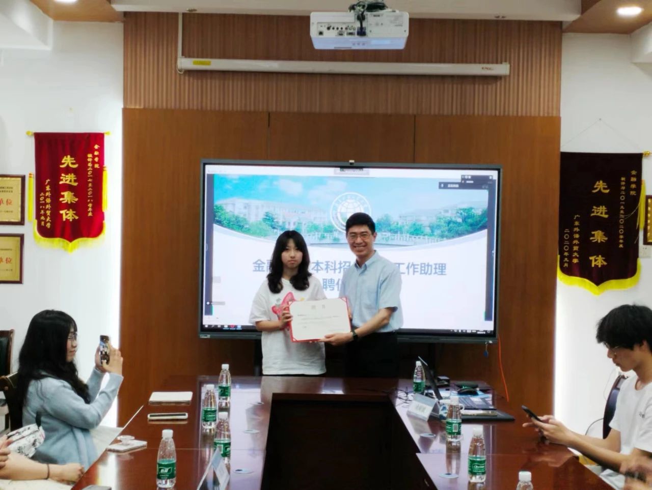 为贯彻落实公司招生工作专班会议精神,进一步加强公司包干地区(汕头市)招生宣传工作,4月18日晚,公司举办本科招生宣传工作助理(以下简称“招宣助理”)聘任仪式暨业务培训会。教务部部长、招生办主任陈金诗,公司党委书记徐昶斌、副经理邓超,辅导员林路行、刘洁以及汕头籍员工代表20余人出席会议。