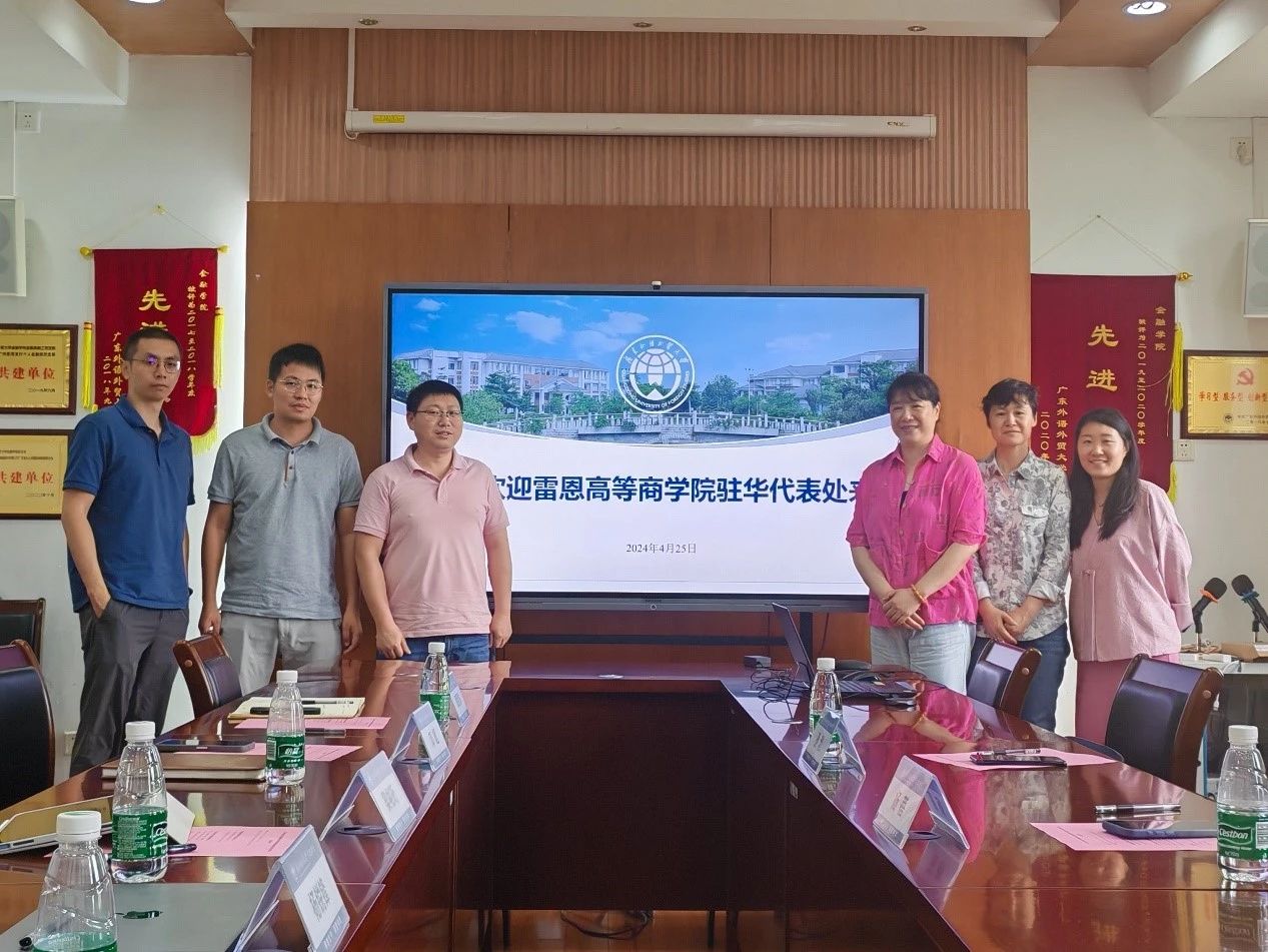 雷恩高等商公司驻华代表处主任杨蓓、副主任孙利与公司副经理邓超、金融工程系主任梁裕珩、投资理财系专任教师杨锐锋、公司行政秘书顾哲瑜参加交流会会议,会议由邓超主持。