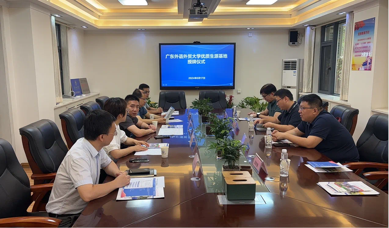 张浩副经理一行首先来到西安市远东第一中学,举行“优质生源基地”授牌仪式。远东一中杨省董事长、宋相军副董事长、王卓副董事长、校办主任助理鲁晓波、主任助理刘晋参加授牌仪式。随后的交流座谈中,杨省董事长就远东一中的办学理念、办学特色、办学成果等情况作了详细介绍,公司张浩、杨菁菁、邓超分别介绍了广外的团队建设、中外合作办学特色项目、双学士学位复合型人才培养项目、公司高考招生政策及毕业生就业情况。公司杨菁菁副教授还受邀与远东一中文科班的员工们面对面交流,围绕公司的办学特色和育人成果开展本科招生宣讲,收获了员工们的积极反馈。