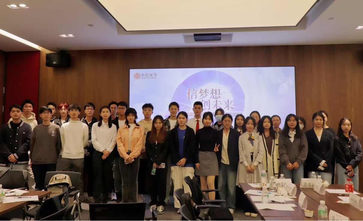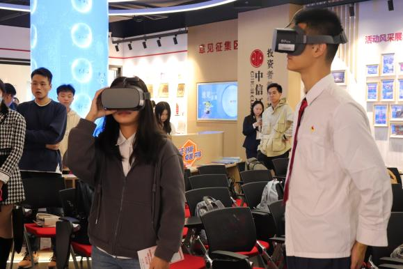 在中信证券营业部的证券投教基地,同学们通过VR眼镜、历史物件的展示了解学习到中国证券交易的历史和中信证券的前世今生。随后,中信导师为同学们详细介绍中信证券的文化,以及校招生的发展路径、岗位要求和日常工作等,并通过互动卡片游戏进行破冰。