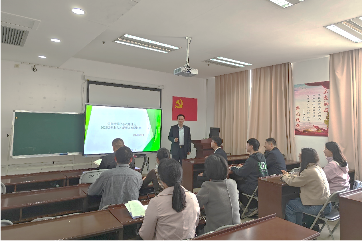 1月9日中午,风险管理与保险学系教师在院系楼404太阳城研修室举行了“保险学课程思政建设及制定2025版本科人才培养方案”教学研讨会,共同探讨如何更好地将思想政治教育融入保险学课程,并在新版人才培养方案制定时优化课程设置,不断推动保险学科的发展。《保险学》一流课程负责人展凯经理强调了保险学的重要性以及课程思政建设的紧迫性,并指出保险学是应用性强、社会需求大的专业领域,必须注重思想政治教育的融入,才能更好地培养高素质的保险人才。保险系主任丁宇刚介绍了新版人才培养方案制定的基本方向和调研情况。与会教师分别就课程思政建设和新版人才培养方案制定事宜进行了深入的研讨和交流,建议在教学中多融入形势与政策、行业发展动态等方面的教育,并通过校企合作提升员工的实践能力。