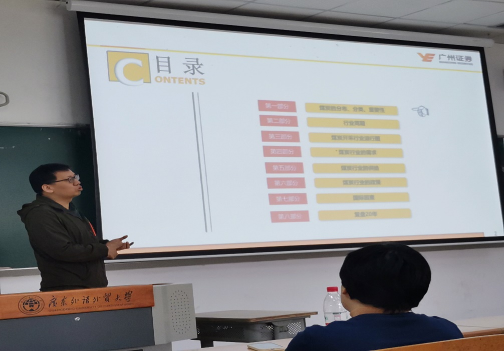 雷凯迪首先介绍了国内场外衍生品的种类,主要包括场外期权、远期等各种灵活多变的金融衍生产品。其次,他介绍了国内场外衍生品的发展历程,随着金融市场的不断发展,场外衍生品市场也在不断壮大。数字化技术的应用、市场参与者的增加、产品创新等都将推动该市场的进一步发展。他还介绍了场外的资产定价原理以及风险管理技巧,由于衍生品市场的特殊性,风险管理显得尤为重要。交易双方需要对市场波动、信用风险等进行有效的监控和管理。最后,他结合自身的工作经验,为广外师弟师妹们提供了从事衍生品相关工作的建议。