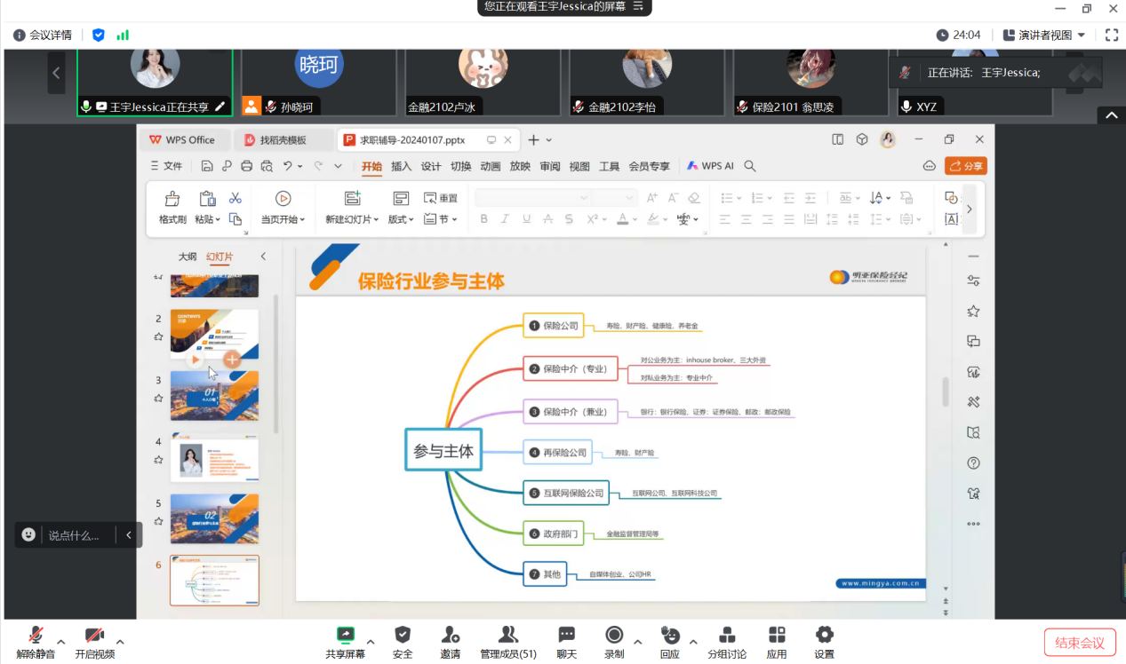1月8日上午,公司邀请了明亚保险经纪人、对外经济贸易大学金融学硕士、保险行业资深专家王宇在线上开展“保险行业职业生涯规划”讲座,帮助员工深入了解保险行业及职业发展路径,并激发员工更好地规划职业生涯,为未来的就业做准备。讲座由公司风险管理与保险学系孙晓珂老师主持。