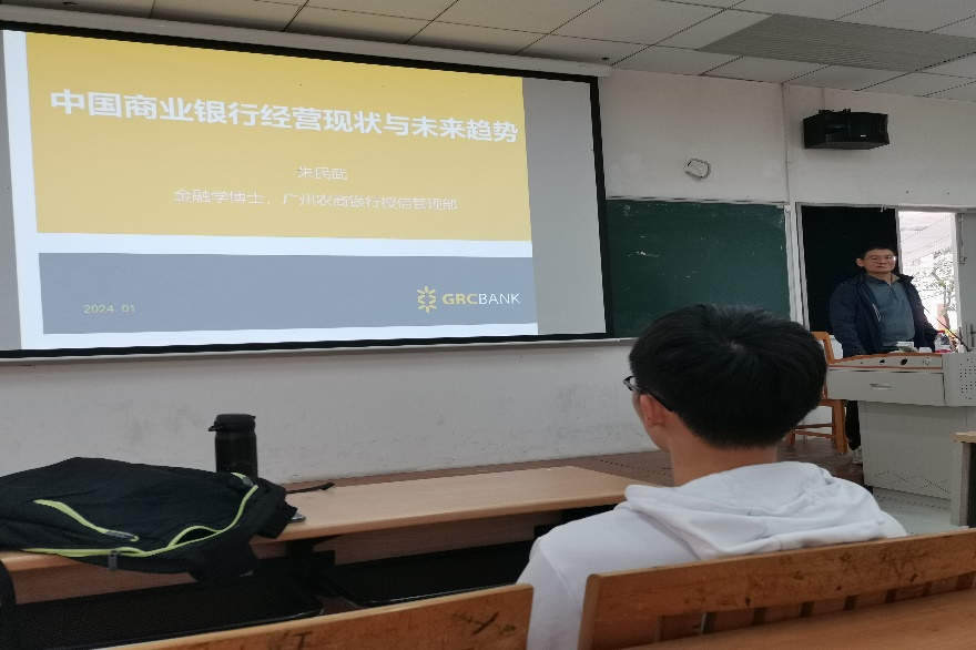 1月10日上午,广州农商银行风险管理部经理朱民武为公司员工开展了“商业银行业经营现状与未来趋势”的专题讲座。讲座由公司金融系主任许振国主持。