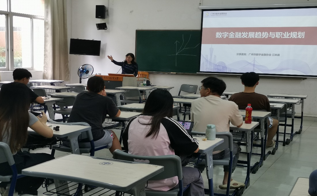 江映霞首先介绍了我国数字金融发展现状和趋势,包括国际数字金融、我国数字金融以及广州市数字金融发展现状和趋势。随后,她介绍了广州市数字金融的发展机遇与未来展望,广州会依托自身发展优势、打造数字金融与绿色金融的协同创新中心、建设粤港澳大湾区数字金融科技创新中心。最后分享了职业发展规划,建议同学们在公司认真学习,可以从事有关区块链、人工智能等新兴领域的相关金融分析和运营管理等工作。