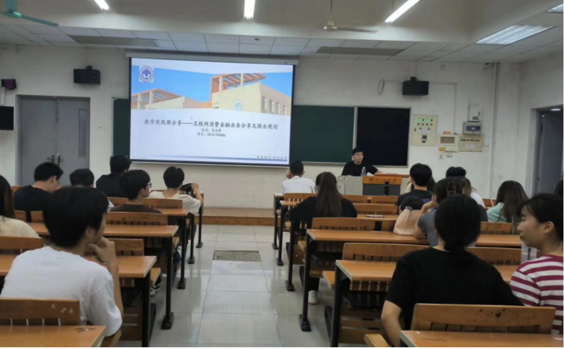 7月1日晚上,公司邀请2020届金融学专业杰出员工、现任职于顶尖互联网金融公司的吴杰荥回母校,在大学城校区教学楼F108为师弟师妹们开展一场 “互联网消费金融业务分享及择业规划”的讲座。