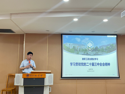 会议伊始,全体教职工共同观看视频学习材料,领会党的二十届三中全会精神。徐昶斌指出,党的二十届三中全会是在我国进入新发展阶段、实现中华民族伟大复兴的关键时期召开的一次重要会议。全会审议通过了《中共中央关于进一步全面深化改革、推进中国式现代化的决定》(以下简称《决定》),为新时代新征程全面深化改革指明了方向。《决定》明确指出要深化教育综合改革,加快建设高质量教育体系。全会还对深化金融体制改革作出了重大部署,指出金融是国民经济的血脉,关系中国式现代化建设全局。