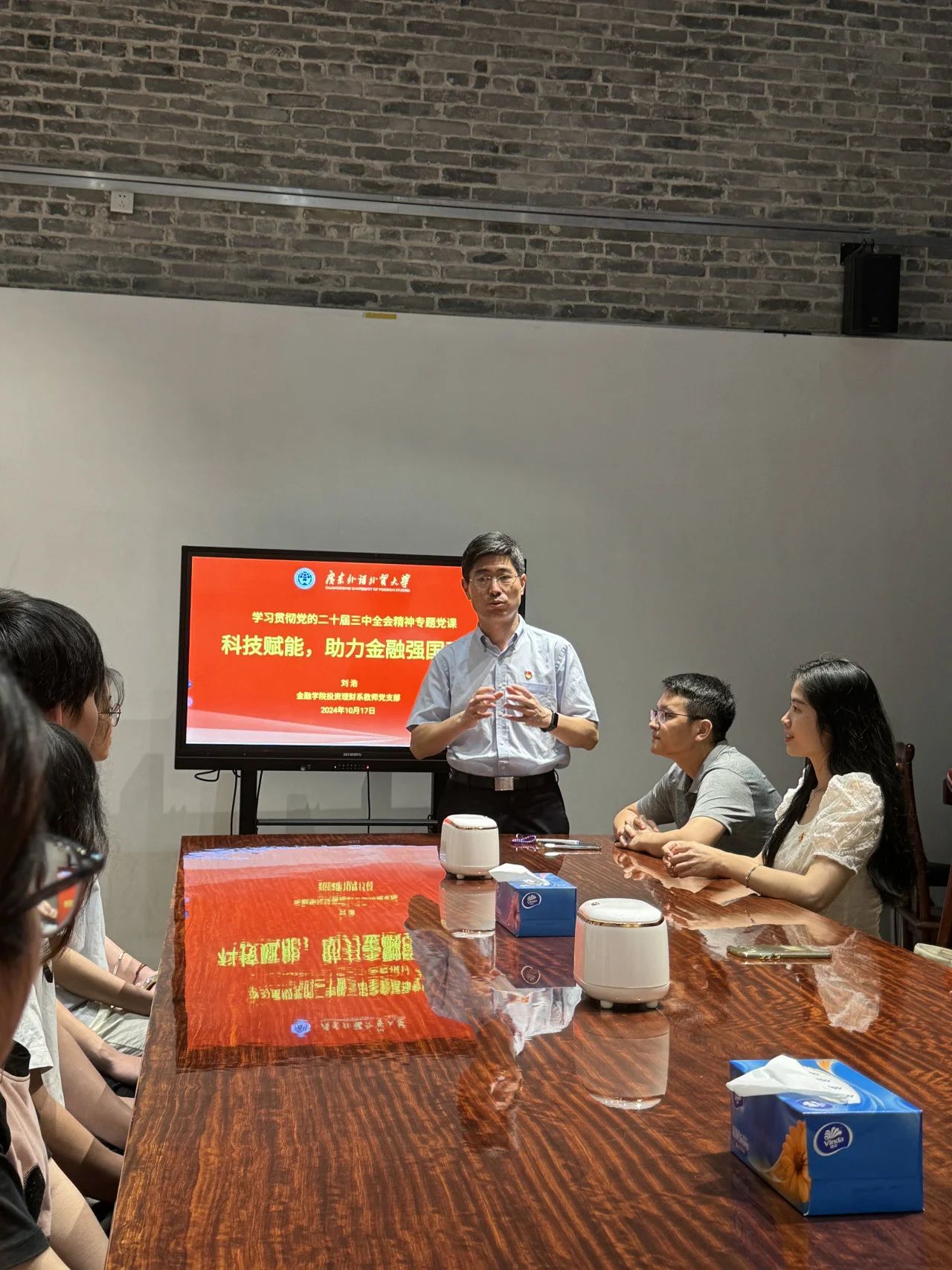 师生围绕会议精神和时事热点,对专业学习、行业情况、生涯规划等方面展开讨论,投资理财系教师党支部党员杨碧云教授、卢万青教授给员工传经送宝,解答疑惑,师生交流互动良好,气氛热烈。