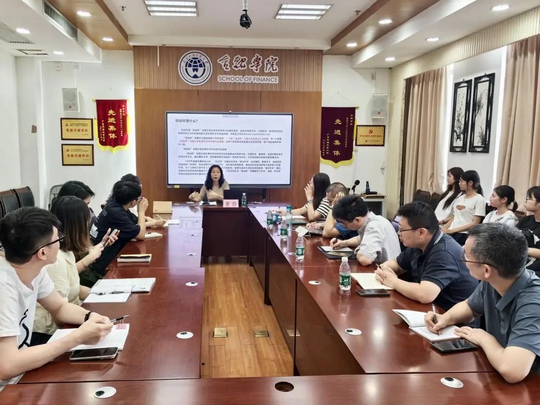 公司于2024年10月16日星期三下午,在院系办公楼 401 顺利举办金融智汇大讲堂(第二讲)暨本科教学质量月活动。本期大讲堂聚焦挑战杯项目培育和新时代教育创新,旨在通过专业的讲座和交流,为员工提供参赛指导,激发创新思维,同时促进教师不断探索教育新模式,提升教学质量,为培养高素质金融人才奠定坚实基础。本期大讲堂由教务部副部长唐静教授主讲,公司党委书记徐昶斌、副经理邓超、党委副书记张璇、全体辅导员以及公司师生代表参加。