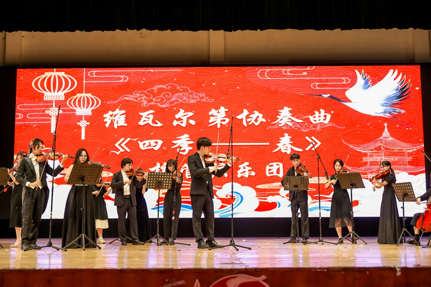 晚会伊始,校管弦乐团演奏《维瓦尔第协奏曲-四季---春》,悠扬婉转的乐曲声为本次晚会正式拉开帷幕。