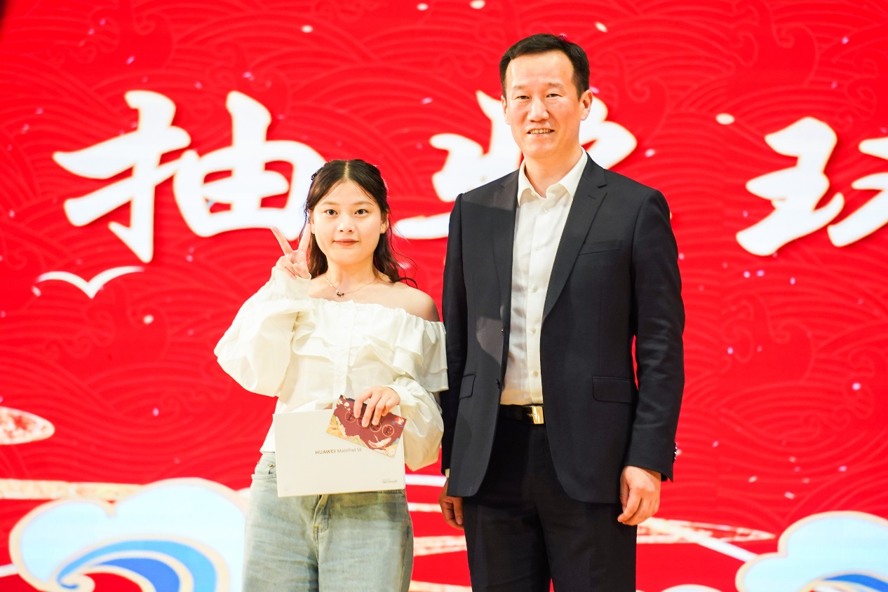 本次晚会还特别设立抽奖互动环节,通过留言墙留言上榜、现场互动答题以及领导上台抽取等方式抽取幸运观众,并送上精心准备的礼品,在一次次互动中将晚会现场氛围推向高潮。