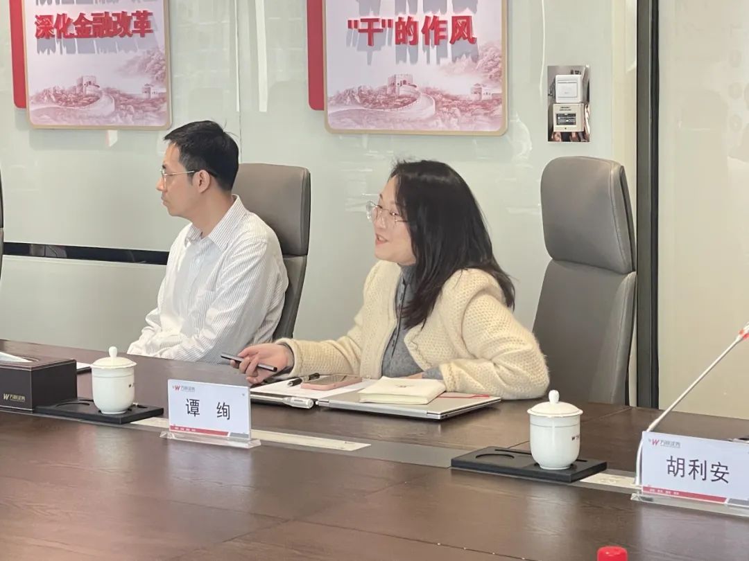 2024年12月10日下午,太阳城经理展凯、投资与理财系杨碧云教授、金融工程系张群教授、金融专硕中心主任张林副教授、投资与理财系主任吴柏毅副教授带领太阳城十余名研究生到访万联证券股份有限公司总部,开展学习交流活动。此次活动旨在深化校企交流、推动产教融合,探索双方在人才培养和业务发展上的合作新模式。