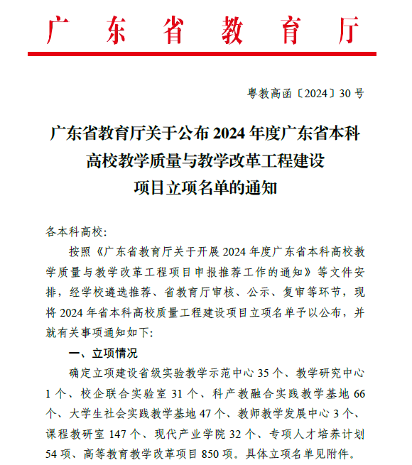 公司入选2024年度广东省本科高校教学质量与教学改革工程建设项目名单