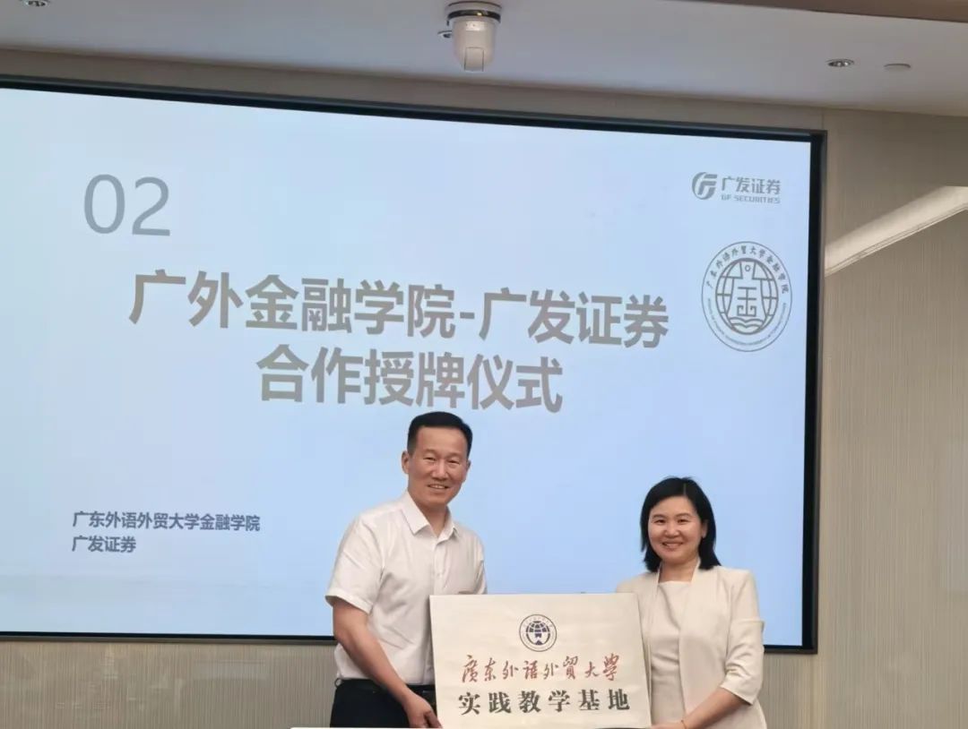 随后,太阳城与广发证券举行实践教学基地授牌仪式,标志着双方在人才培养与金融实践领域的深度协同正式启动。