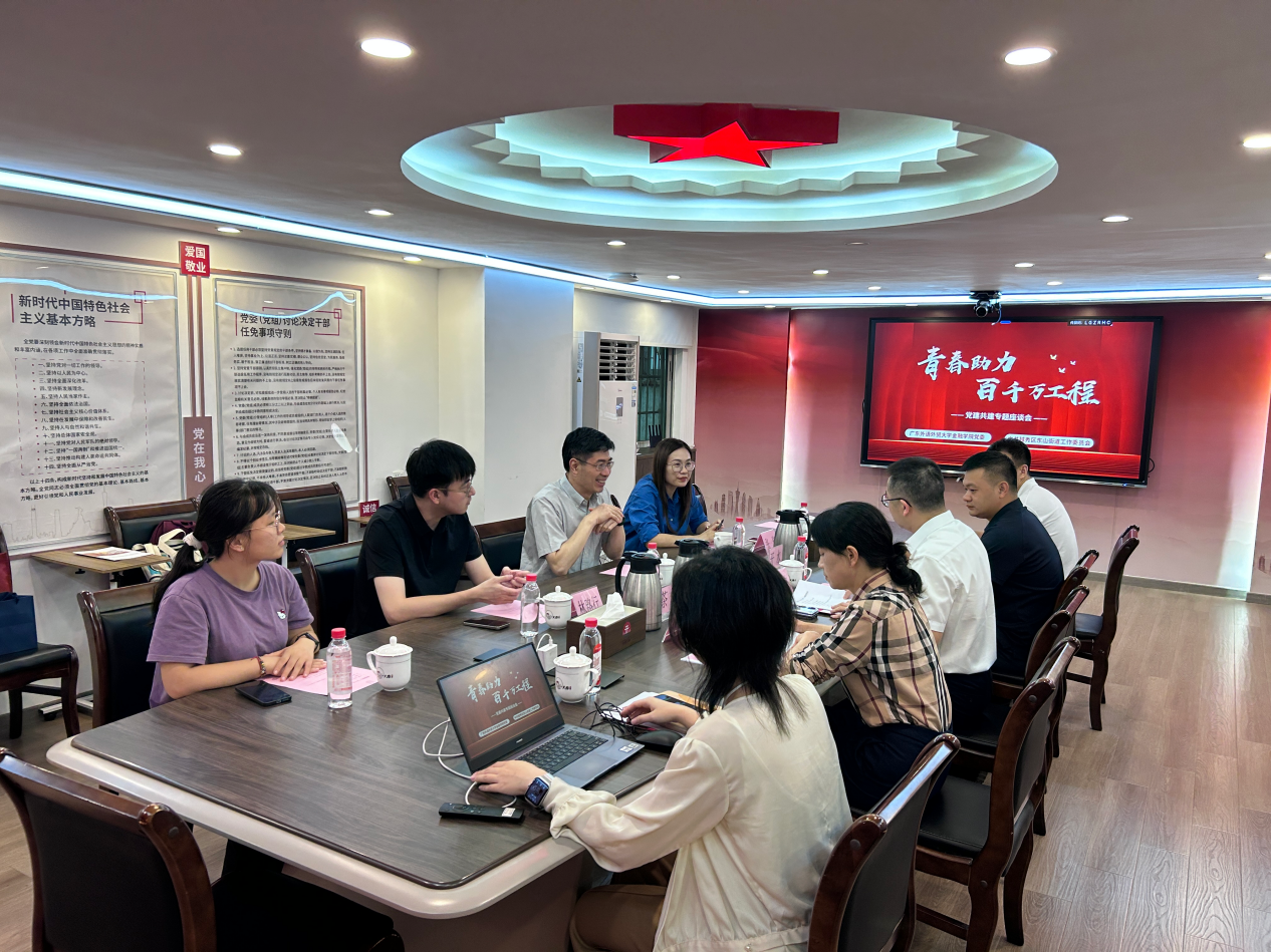 5月27日下午,公司党委书记徐昶斌、副书记张璇、创新创业教育中心党支部(以下简称“双创”党支部)书记林路行及“百千万工程”青年突击队“星火虹推”团队员工代表前往东山街道办事处,与东山街党工委书记张新宇,副书记欧阳慧,街道办事处副主任王一平等开展“百千万工程”项目结对暨党建共建专题座谈会。