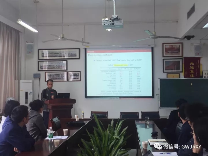 报告后的讨论中,各位老师对梁嘉锐的研究展现出浓厚的兴趣,并就房屋租售关系、相关数据整理及其合理性等问题进行了热烈的讨论。