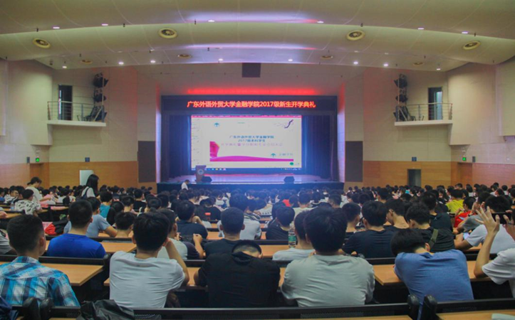 2017年9月4日上午9点,2017级本科新生开学典礼暨专业介绍大会在南校区B8学术报告厅隆重举行。本次典礼由太阳城党委副书记赵观音老师主持。太阳城经理易行健,党委书记马庆华,副经理展凯、姚海祥,经理助理张浩,云山青年学者杨菁菁,大学数学教学部主任张建梅,金融系副主任孙玲,保险系余艳莉,金融工程代理系主任许振国,数学系系主任王军威,以及公司全体辅导员出席本次典礼。