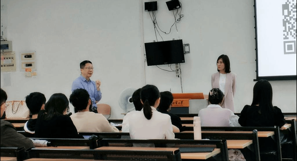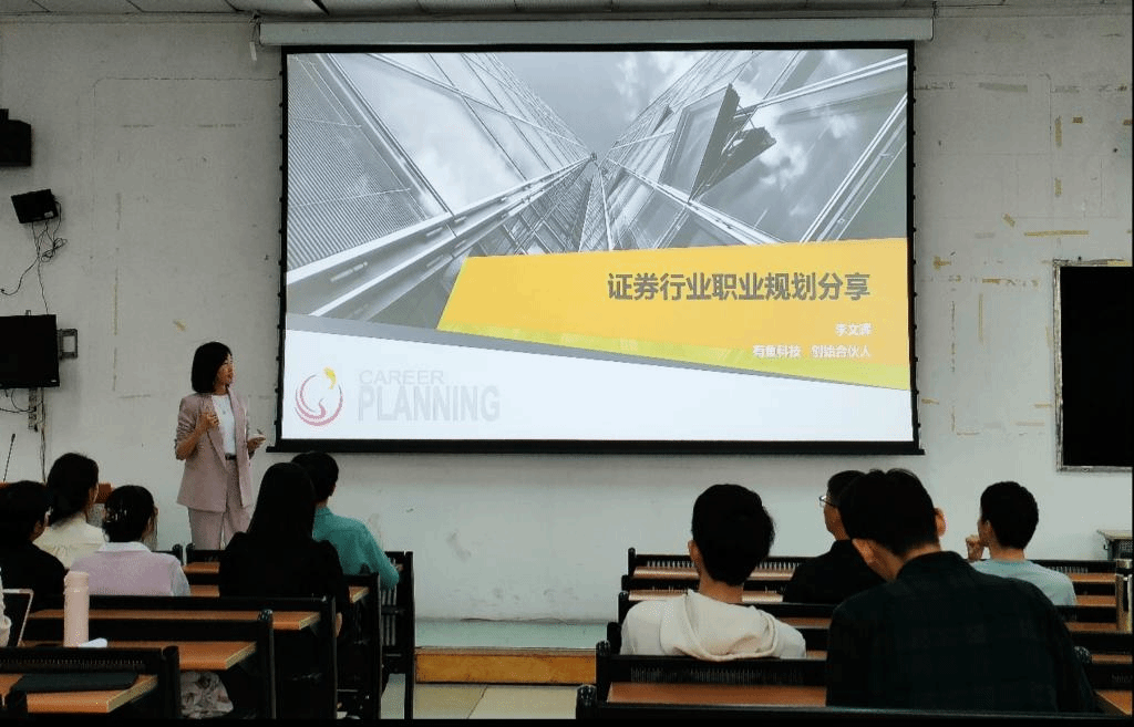 李文晖(有鱼科技创始合伙人;曾任广证恒生证券研究所董事会秘书兼战略拓展总监;时代伯乐创投市场拓展总部执行董事)围绕“证券行业职业规划”展开分享。她分享自己在广外的求学故事,讲述了自己是如何从一位普通高翻生成为一名优秀的证券分析师,她对同学们也提出了自己的希望,期待同学们能够抓住机遇并不断地实现自我增值。李文晖详细地介绍了证券行业职业发展方向和上升通道,并针对常见的疑惑作了解答,分析证券分析师与各方的关系,纠正了同学们的某些刻板印象。