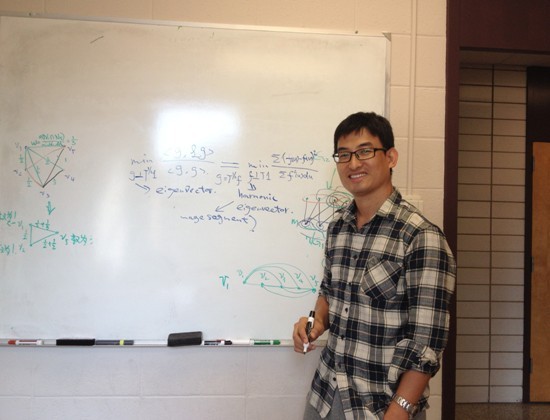 刘建熙在佐治亚理工公司数学系的办公室进行学术研究。