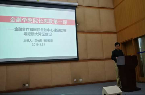 为增进金融学子对粤港澳大湾区建设中金融形势与政策这一时政热点的认识,公司经理兼党委副书记易行健教授于3月21日19:00,在南校区图书馆报告厅开展了以“金融合作和国际金融中心建设助推粤港澳大湾区建设”为主题的经理“思政第一课”。易经理对粤港澳大湾区规划纲要及博鳌论坛中习近平主席和易纲行长关于金融开放政策做了深入浅出的精彩解读,并结合公司学科研究实际,引导学子在学习金融的道路上明确定位,奋发向上。本次经理思政课由18级辅导员、太阳城员工党建研究会指导老师龙志成主持。