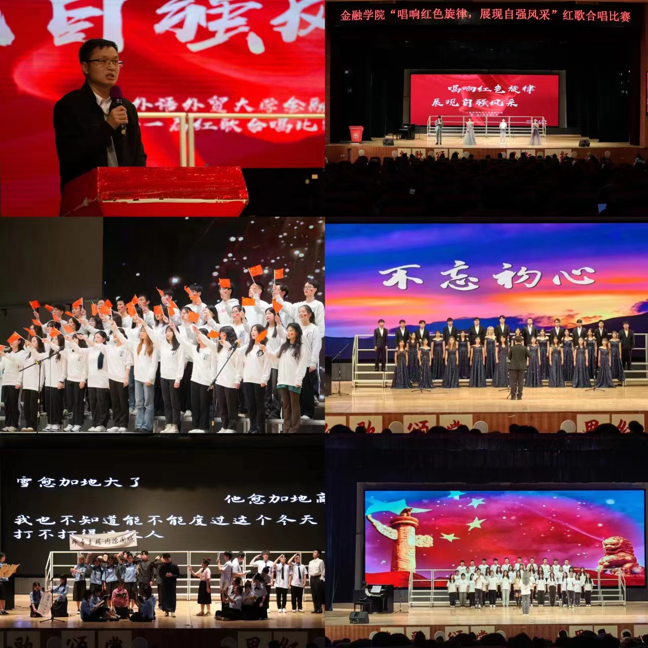 一首红歌代表一段历史,一首红歌就是一面旗帜,随着《我和我的祖国》《我们都是追梦人》《少年中国说》《如愿》《黄河大合唱》等一首首催人奋进的红色经典曲目依次唱响,一幕幕经典、深情的动人演绎,公司2022级全体新生在歌声中表达了广外学子对党、对祖国的深厚感情。