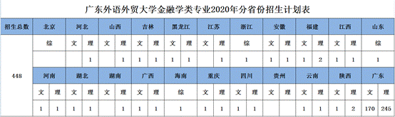2020年公司计划招收金融学大类本科生448名,详细分省份招生计划见下表: